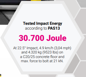 Compliance: This product meets the safety standards outlined in PAS13, ensuring maximum protection and performance for workplace safety and impact protection systems. The Dock Gate NOVEMBER complies with PAS13 guidelines for barriers in industrial environments, offering an optimized solution for managing traffic flows and minimizing accidents.